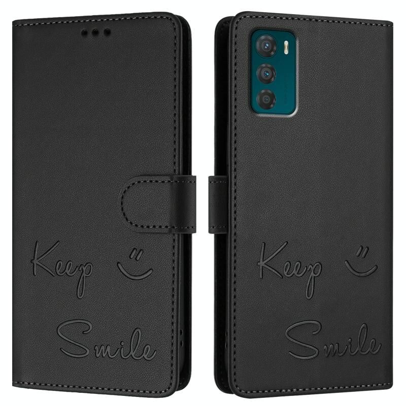 Θήκη τηλεφώνου δερμάτινη με ανάγλυφο χαμόγελο για Motorola Moto G42 (Μέντας Πράσινο)