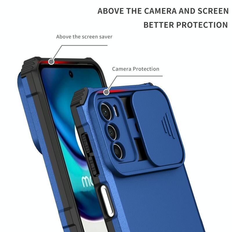 Για Motorola Moto G42 Στερεοσκοπικό κάτοχος συρόμενη θήκη τηλεφώνου Camshield (μπλε)