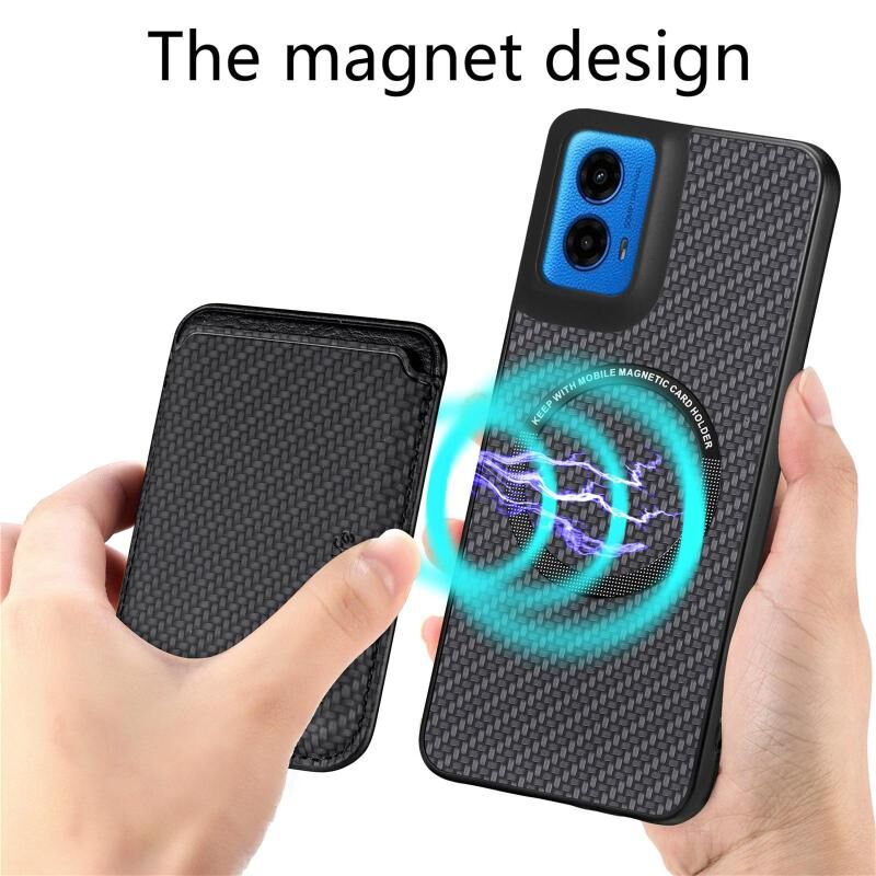 Θήκη τηλεφώνου Motorola Moto G45 5G από ανθρακονήματα και δέρμα με κάρτες και MagSafe (Μαύρο)