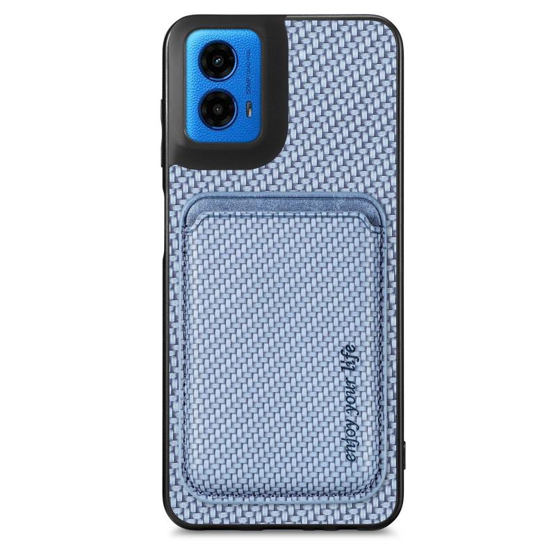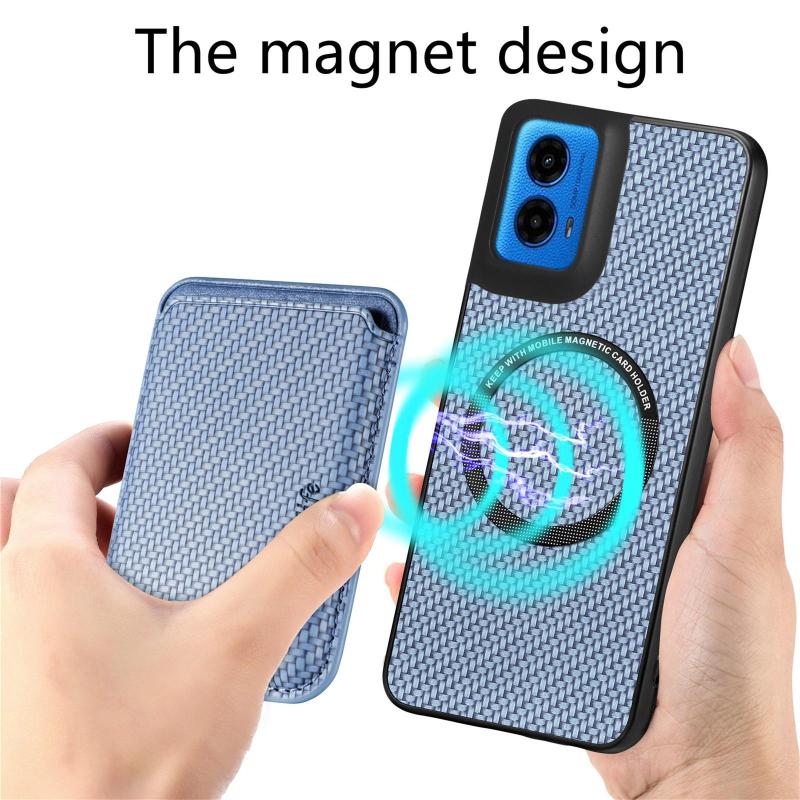 For Motorola Moto G45 5G Carbon Fiber Leather Card MagSafe Phone Case(Blue)