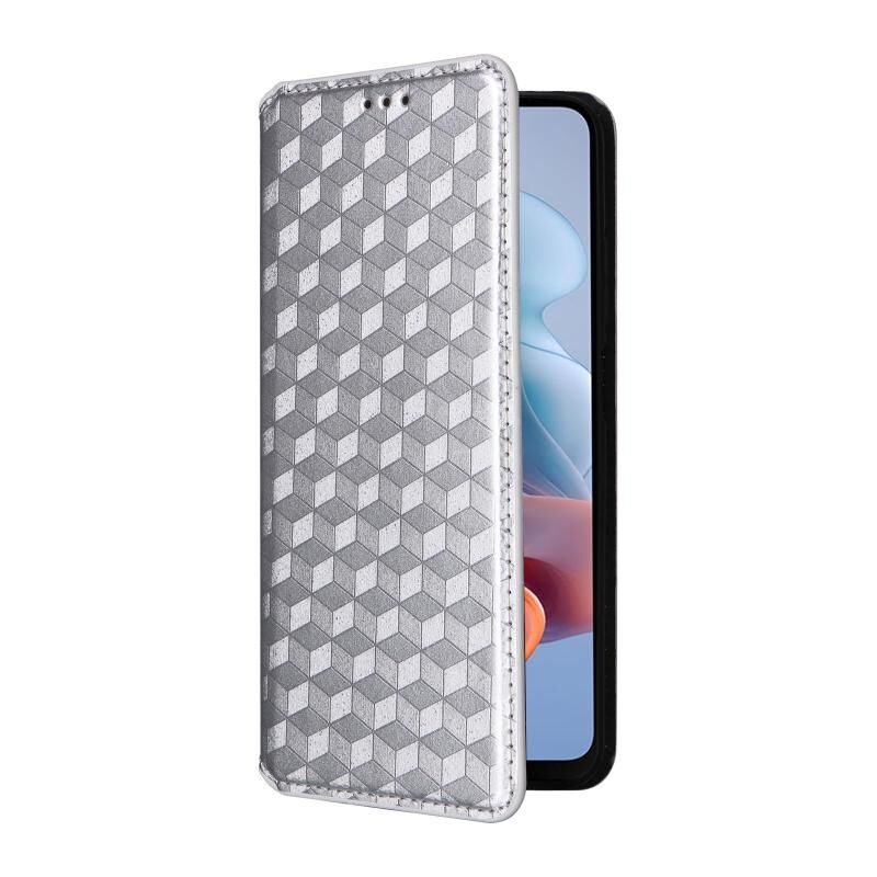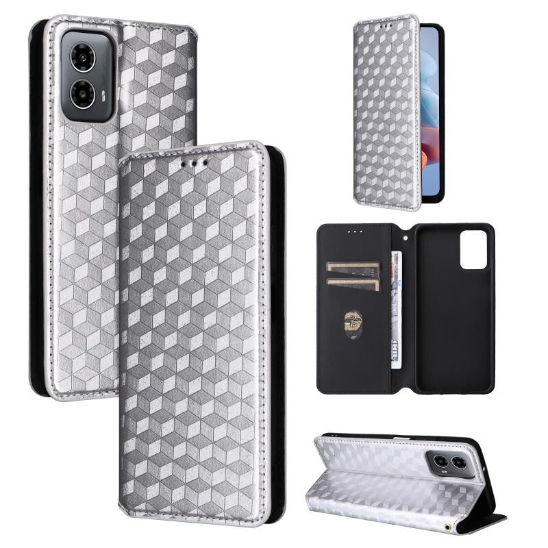 Θήκη τηλεφώνου από δέρμα με υφή κυβικού πλέγματος για Motorola Moto G45 5G / G34 5G (Ασημί)
