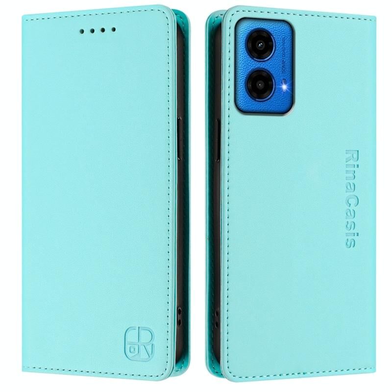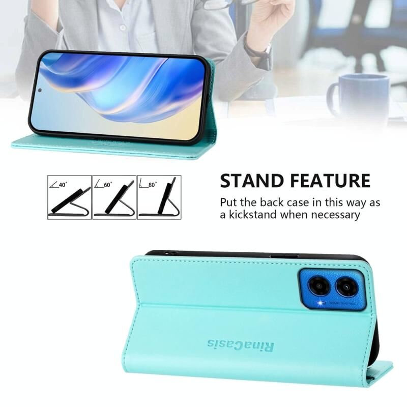 Θήκη τηλεφώνου δερμάτινη με μαγνητική απορρόφηση και διπλή πτύχωση για Motorola Moto G45 5G / G34 5G RC01 (Μέντας πράσινο)