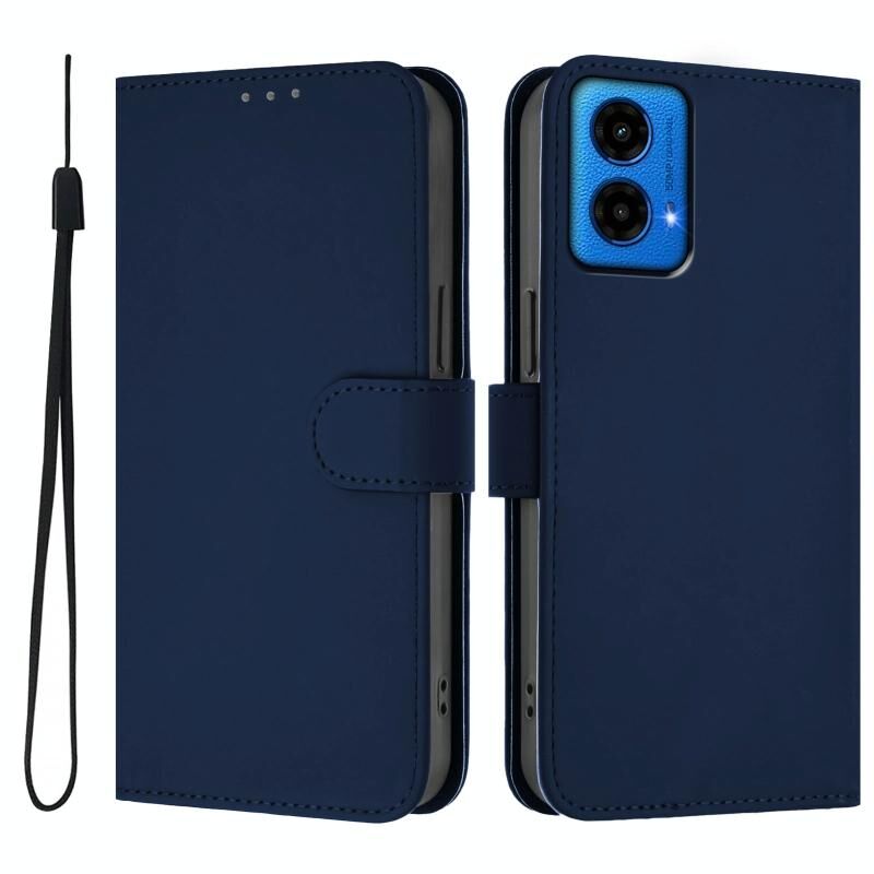 Για Motorola Moto G45 5G / G34 5G δέρμα αίσθηση στερεό χρώμα δερμάτινη θήκη τηλεφώνου με κορδόνι (Navy Blue)