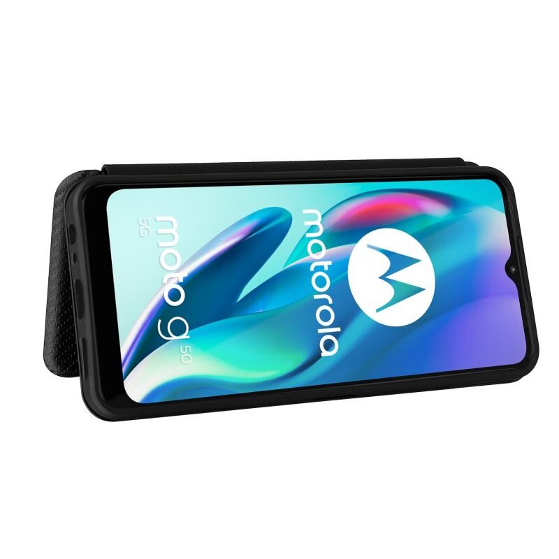 Για Motorola Moto G50 5G Carbon Fiber Texture Horizontal Flip TPU + PC + PU Leather Case με υποδοχή κάρτας (Μαύρο)