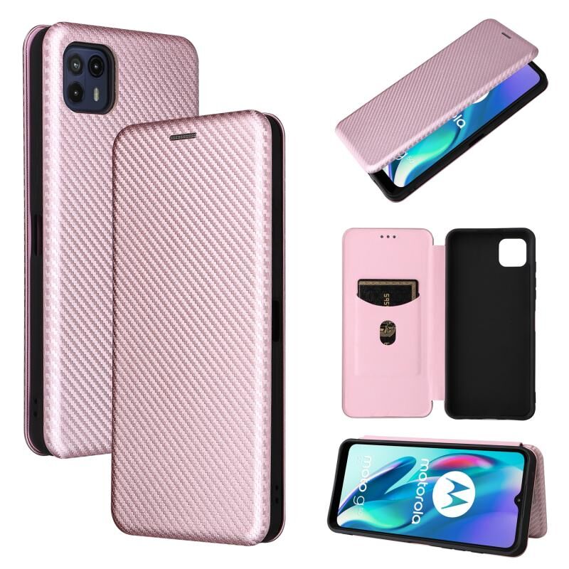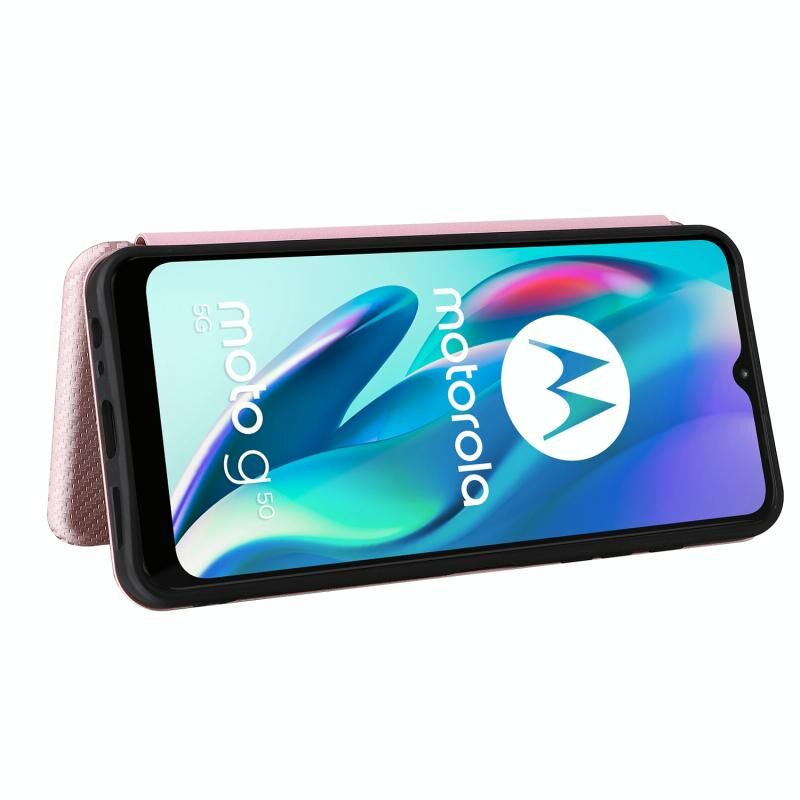 Για Motorola Moto G50 5G Carbon Fiber υφή οριζόντια Flip TPU + PC + PU δέρμα υπόθεση με υποδοχή κάρτας (ροζ)