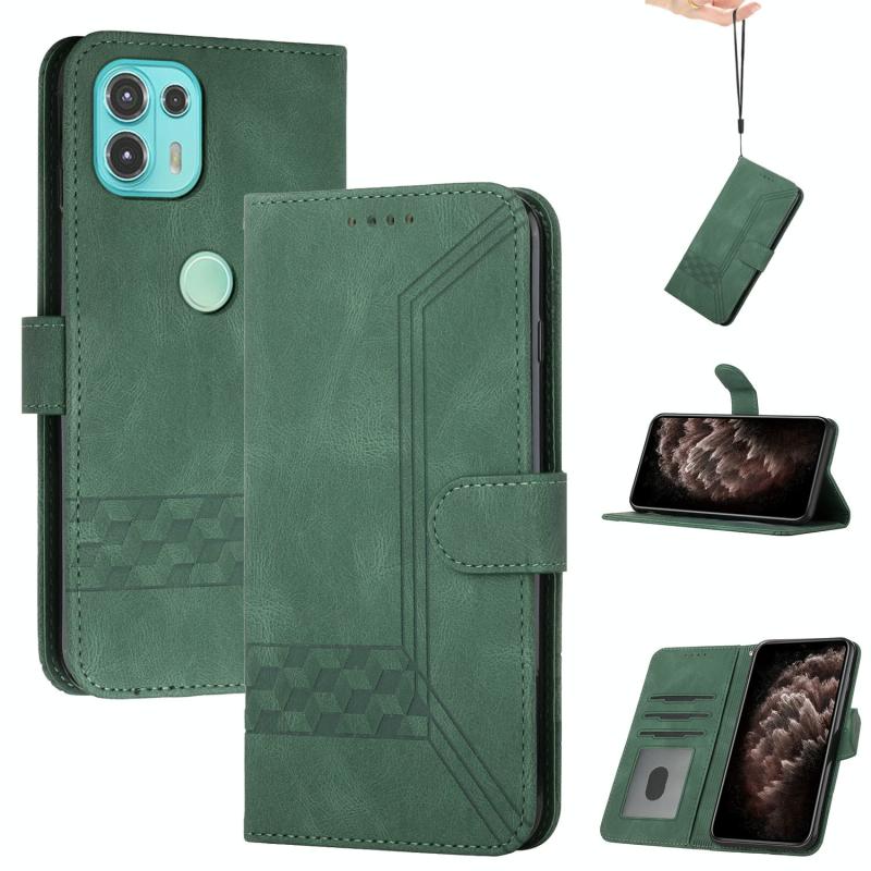 For Motorola Moto G50 5G Cubic Skin Feel Flip Leather Phone Case(Dark Green)