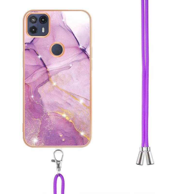 Θήκη κινητού τηλεφώνου για Motorola Moto G50 5G με γαλβανισμό, σχέδιο μάρμαρου IMD, από TPU με κορδόνι (Μωβ 001)