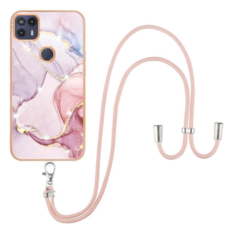 Θήκη κινητού τηλεφώνου για Motorola Moto G50 5G με γαλβανισμό, σχέδιο μάρμαρου IMD, από TPU με κορδόνι (Μωβ 001)
