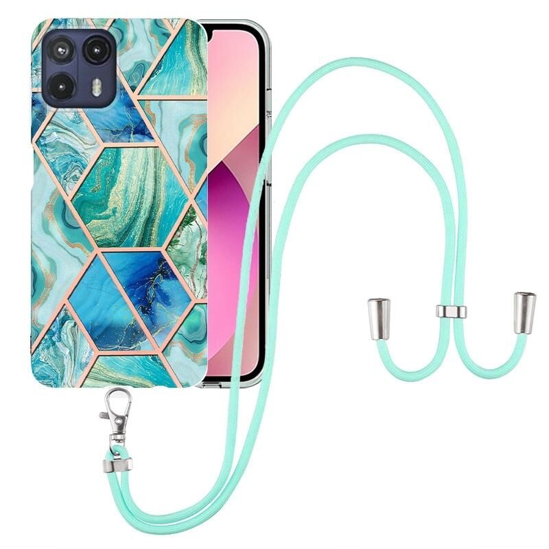 Θήκη τηλεφώνου TPU με γαλβανισμό και μαρμάρινη σύνθεση για Motorola Moto G50 5G με κορδόνι (Σκούρο Μωβ)