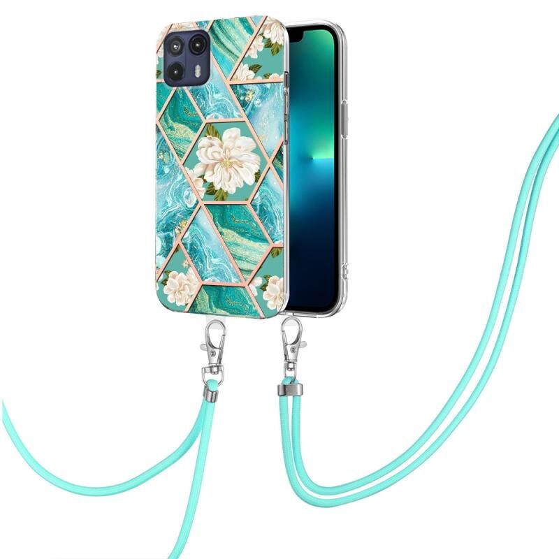 Θήκη τηλεφώνου TPU με σχέδιο μαρμάρου και λουλουδιών για Motorola Moto G50 5G με κορδόνι (Ροζ Λουλούδι)