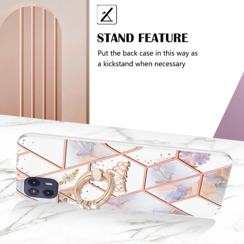 Θήκη για Motorola Moto G50 5G, Σplicing Marble Flower Pattern, TPU με Δακτύλιο Στήριξης (Imperial Crown)