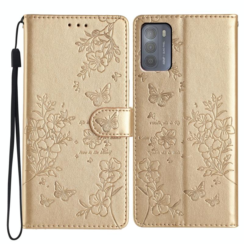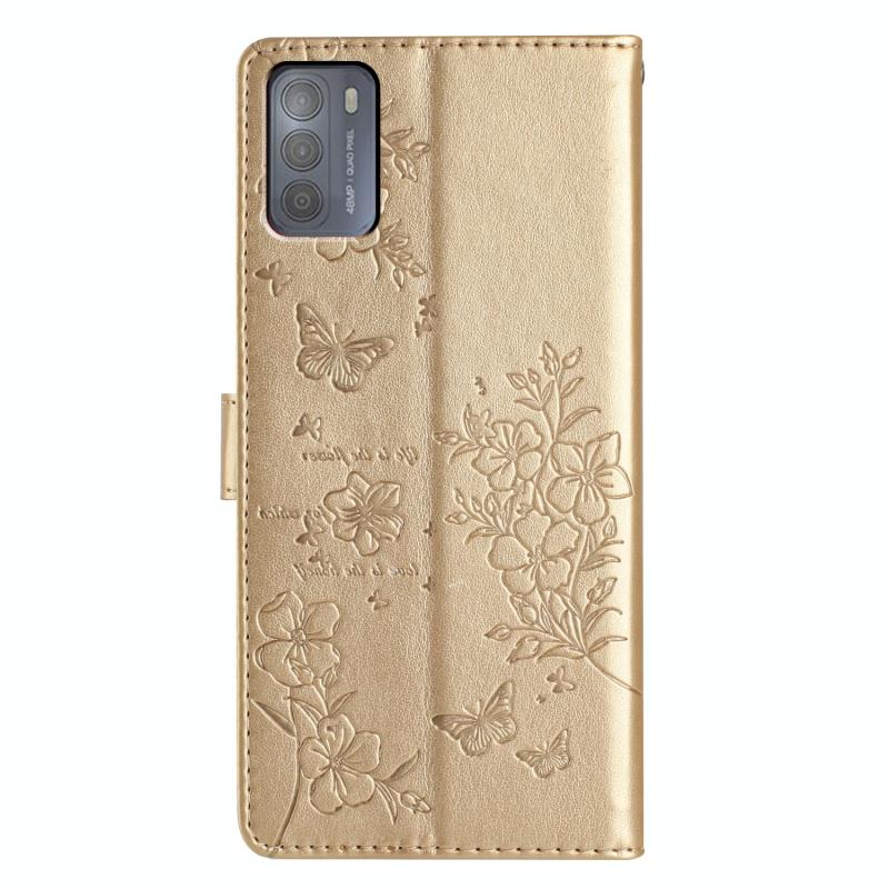 For Motorola Moto G50 Butterflies and Flowers Leather Phone Case(Gold)