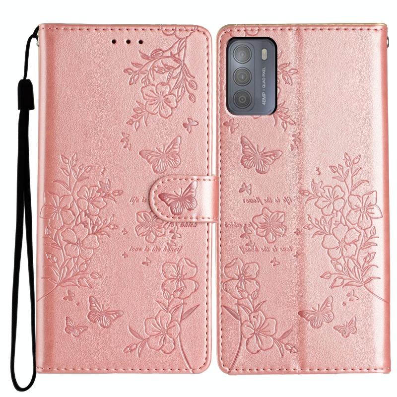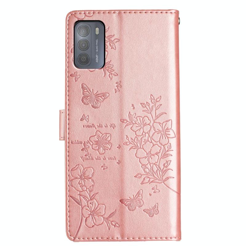 For Motorola Moto G50 Butterflies and Flowers Leather Phone Case(Rose Gold)