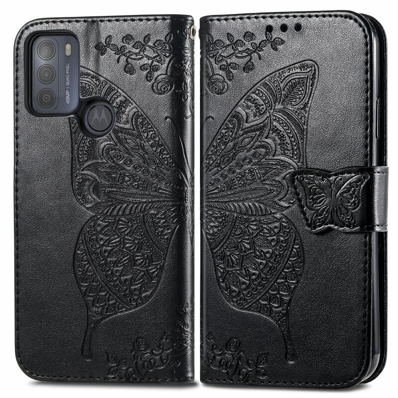 Για Motorola Moto G50 πεταλούδα αγάπη λουλούδια ανάγλυφο οριζόντια Flip δερμάτινη θήκη με κάτοχο & υποδοχές για κάρτες & πορτοφόλι & κορδόνι (Μαύρο)