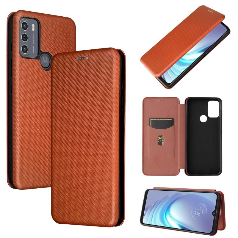Για Motorola Moto G50 Carbon Fiber Texture Horizontal Flip TPU + PC + PU Leather Case με υποδοχή κάρτας (Καφέ)