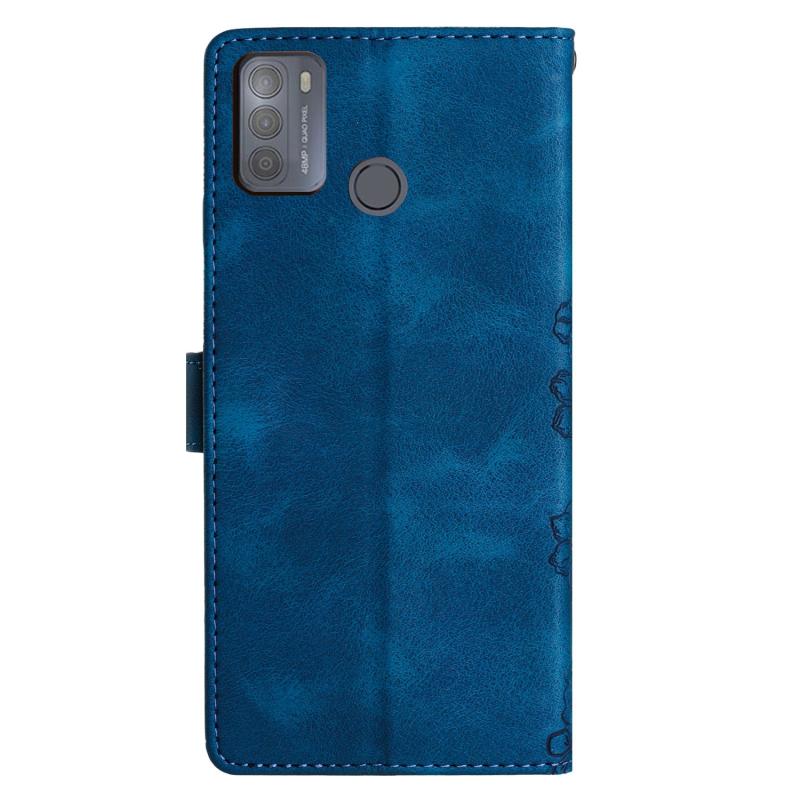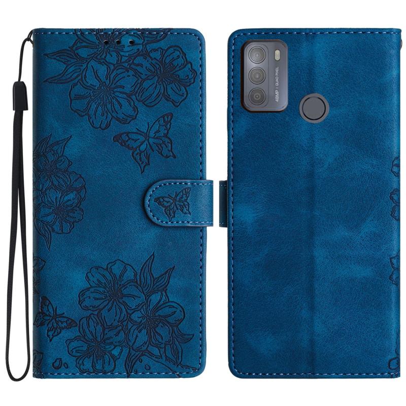 For Motorola Moto G50 Cherry Blossom Butterfly Skin Feel Embossed PU Phone Case(Blue)