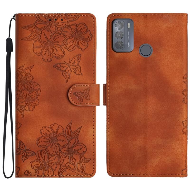 Θήκη κινητού τηλεφώνου Motorola Moto G50 Cherry Blossom Butterfly Skin Feel Embossed PU (Κόκκινη)