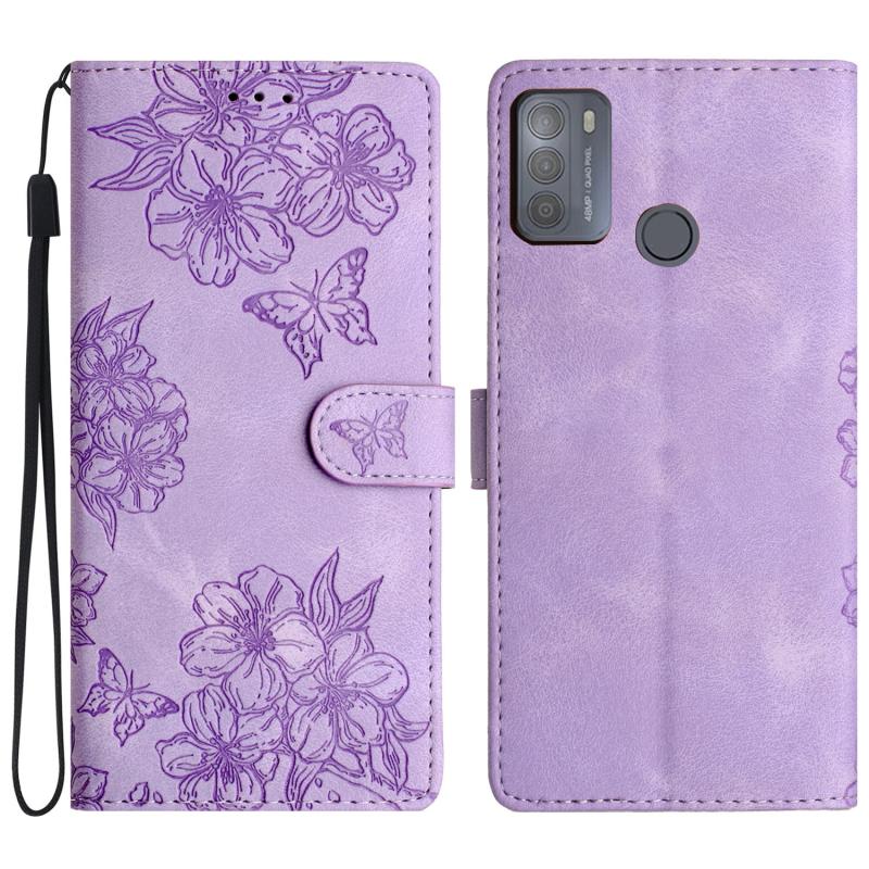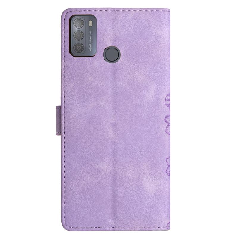 For Motorola Moto G50 Cherry Blossom Butterfly Skin Feel Embossed PU Phone Case(Purple)