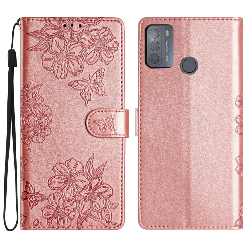 For Motorola Moto G50 Cherry Blossom Butterfly Skin Feel Embossed PU Phone Case(Rose Gold)