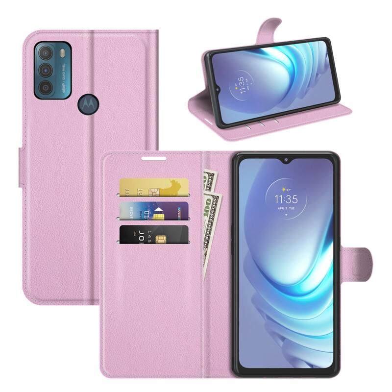 Για Motorola Moto G50 Litchi Υφή Οριζόντια Flip Προστατευτική θήκη με θήκη & υποδοχές για κάρτες & πορτοφόλι (ροζ)