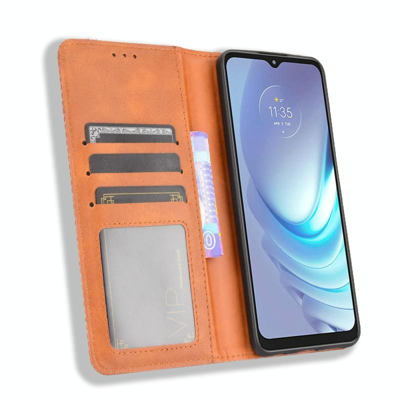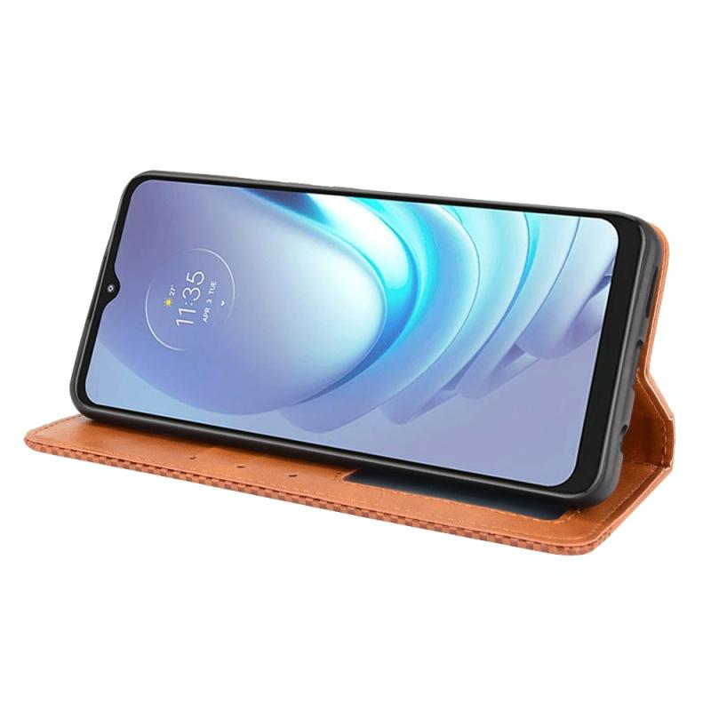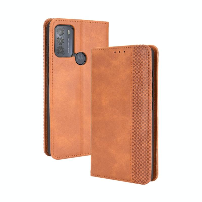 Θήκη δέρματος οριζόντιας αναδίπλωσης με μαγνητικό κούμπωμα, υφή Retro Crazy Horse για Motorola Moto G50, με βάση στήριξης, θήκες καρτών & κορνίζα φωτογραφιών (Κόκκινο)