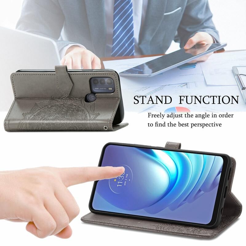 Για Motorola Moto G50 Mandala ανάγλυφο μοτίβο οριζόντια Flip δερμάτινη θήκη με θήκη & υποδοχές για κάρτες & πορτοφόλι & κορδόνι (γκρι)