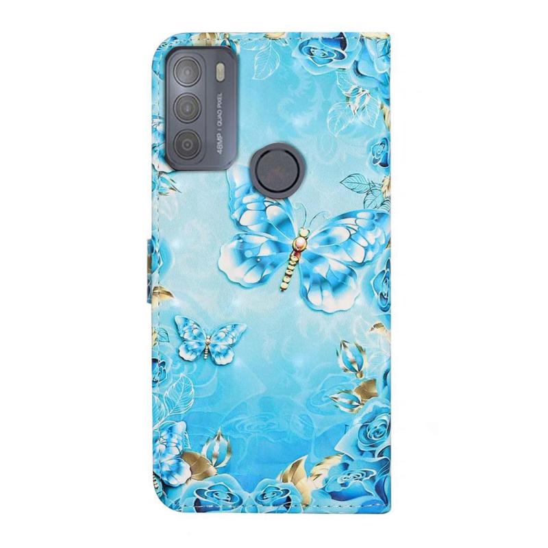 Θήκη τηλεφώνου δερμάτινη με ανάγλυφο σχέδιο 3D (Μπλε πεταλούδες) για Motorola Moto G50.