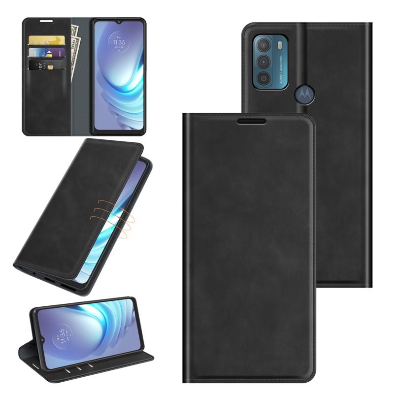 For Motorola Moto G50 Retro-skin Business Magnetic Suction Leather Case with Holder & Card Slots & Wallet(Black)