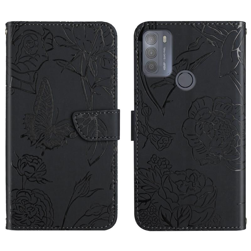 Θήκη κινητού τηλεφώνου από δέρμα με ανάγλυφο σχέδιο πεταλούδας και παιώνιας για Motorola Moto G50 (Κόκκινο)
