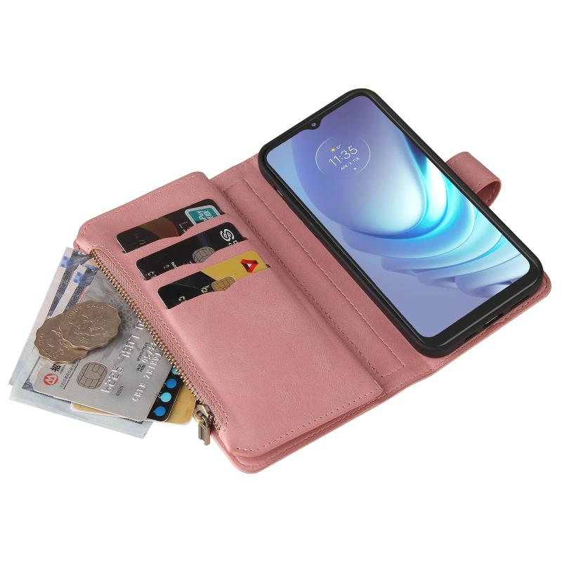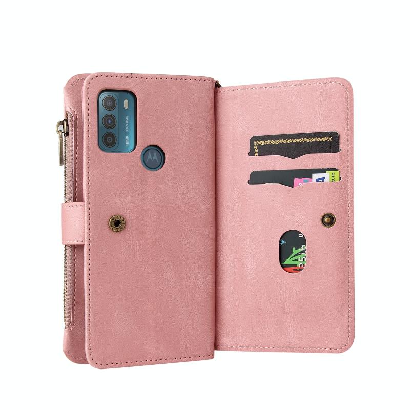For Motorola Moto G50 Skin Feel PU + TPU Horizontal Flip Leather Case With Holder & 15 Cards Slot & Wallet & Zipper Pocket & Lanyard(Pink)