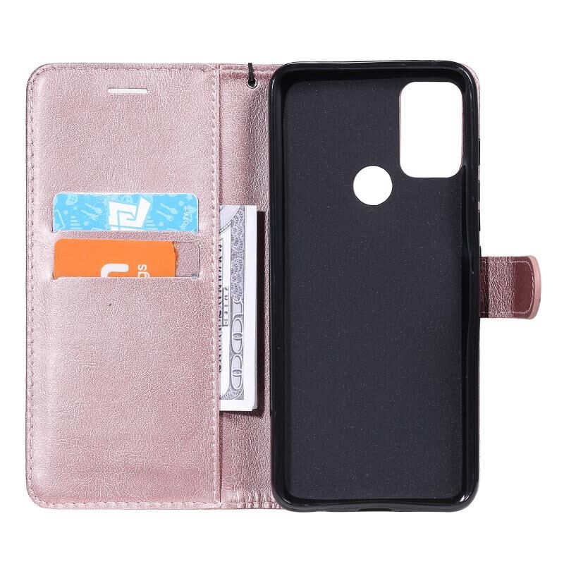 Για Motorola Moto G50 Αμιγές χρώμα Οριζόντια Flip προστατευτική δερμάτινη θήκη με θήκη & υποδοχές για κάρτες & πορτοφόλι & πλαίσιο φωτογραφιών & κορδόνι (ροζ χρυσό)