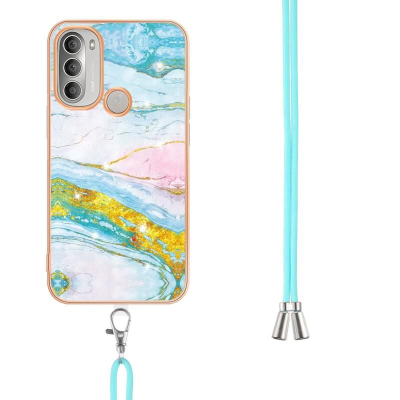 Θήκη κινητού τηλεφώνου για Motorola Moto G51 5G με γαλβανισμό, σχέδιο μάρμαρου IMD, από TPU με κορδόνι (Μωβ 001)