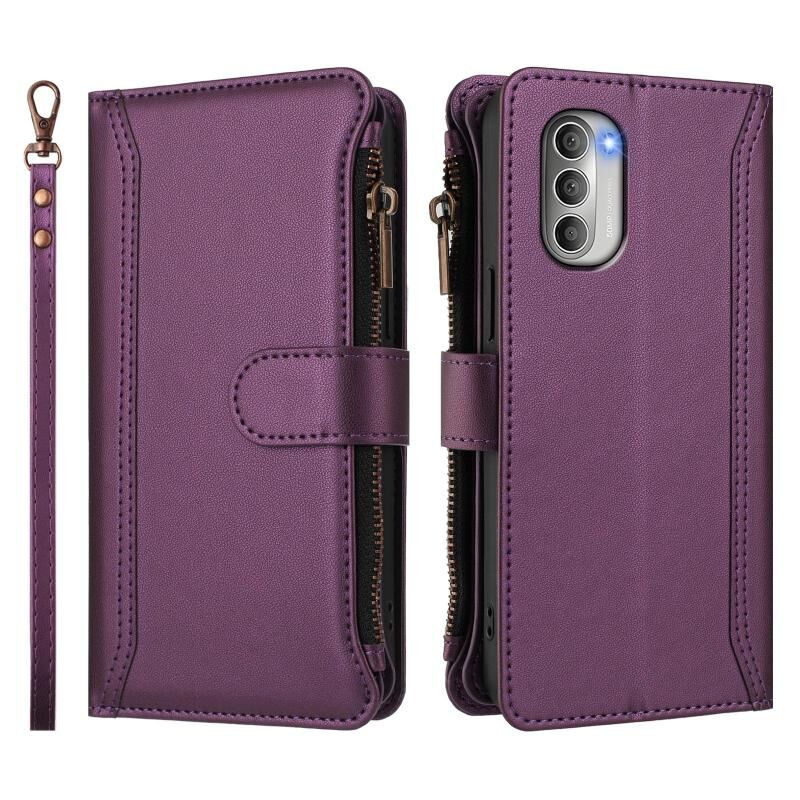 Για Motorola Moto G51 5G Μαγνητικό Κλείσιμο 9 Θήκες Κάρτας Δερμάτινη Θήκη με Φερμουάρ και Λουρί Χεριού (Μωβ)