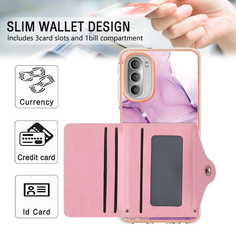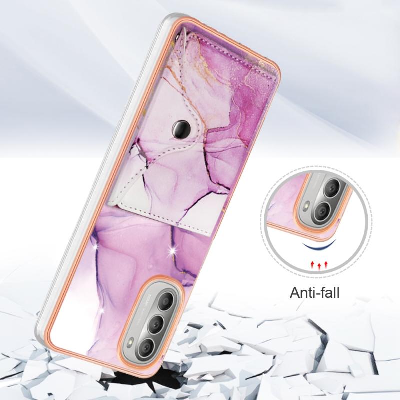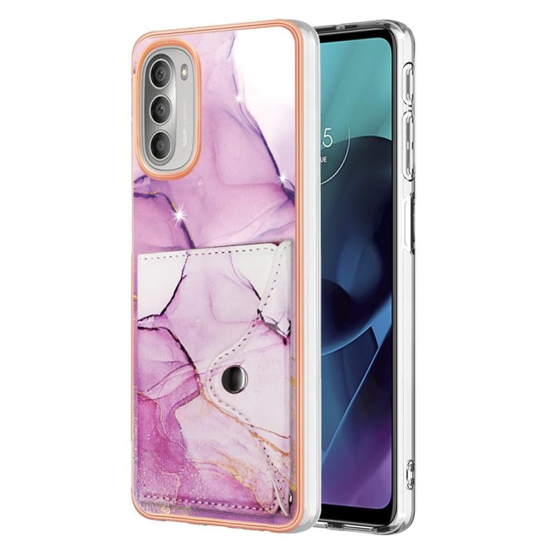 For Motorola Moto G51 5G Marble Pattern IMD Card Slot Phone Case(Pink Purple Gold)