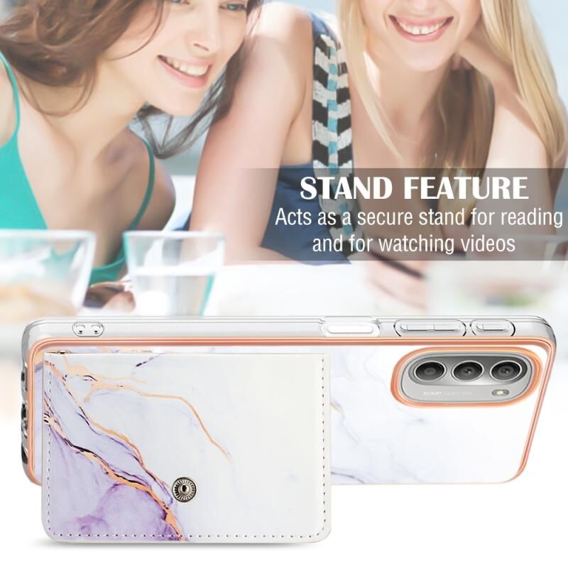 Θήκη κινητού τηλεφώνου με θήκη κάρτας IMD με σχέδιο μαρμάρου για Motorola Moto G51 5G (Λευκό Μωβ)