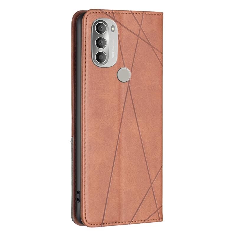 Για Motorola Moto G51 5G Prismatic Αόρατη μαγνητική δερμάτινη θήκη τηλεφώνου (καφέ)