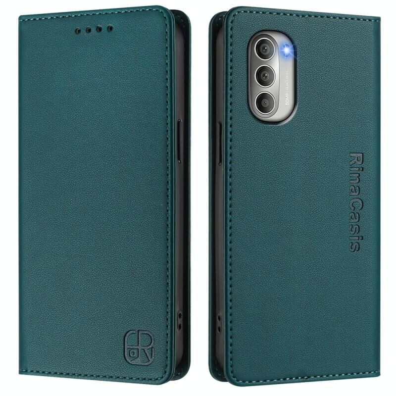 Θήκη τηλεφώνου δερμάτινη με μαγνητική απορρόφηση και διπλή πτυχή για Motorola Moto G51 5G RC01 (Μέντας Πράσινο)