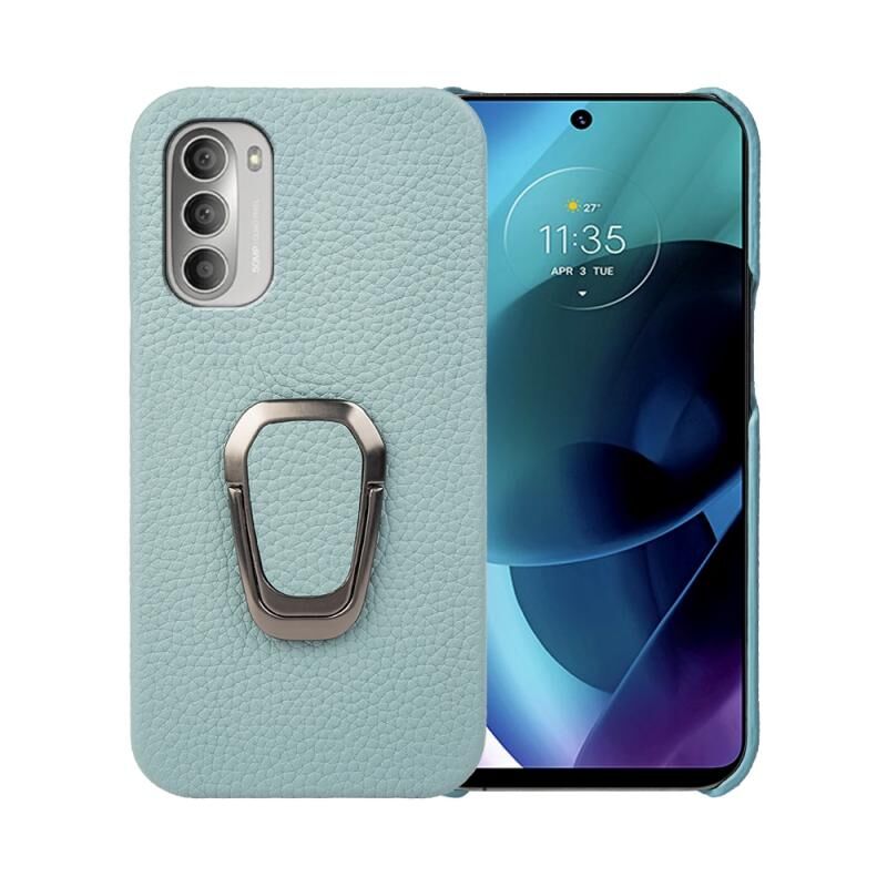 Για Motorola Moto G51 5G Ring Holder Litchi υφή γνήσιο δέρμα τηλέφωνο υπόθεση (κυανό)