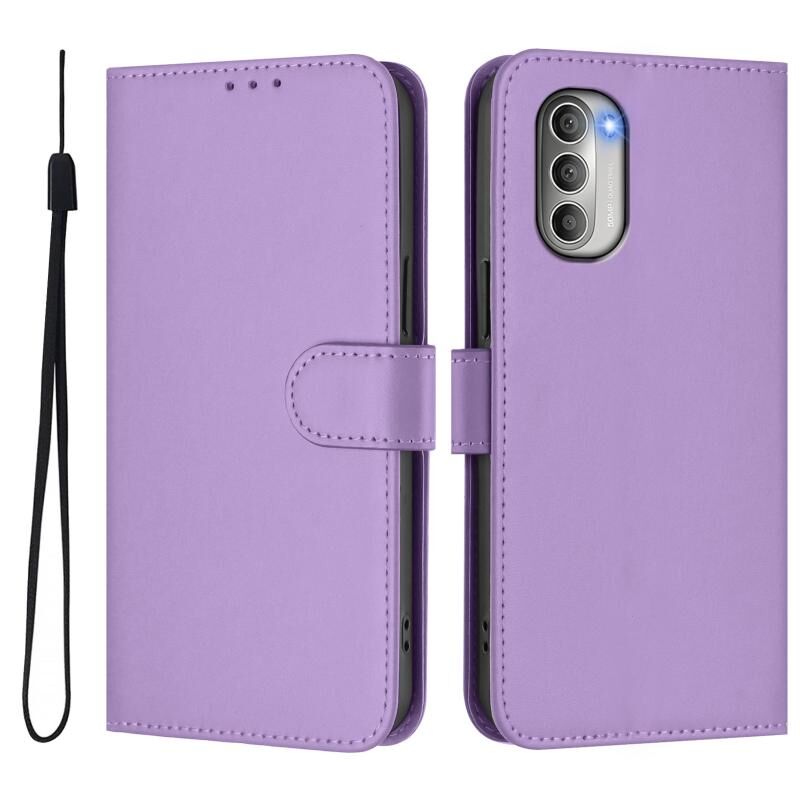 Για Motorola Moto G51 5G Skin Feel Solid Color Leather Phone Case με κορδόνι (μωβ μωβ)