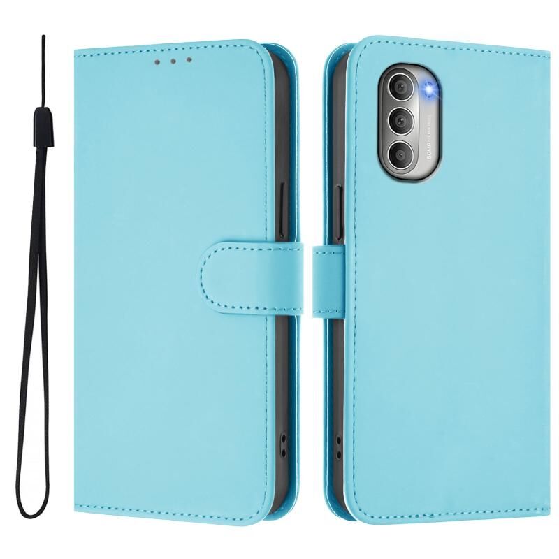 Για Motorola Moto G51 5G Skin Feel Solid Color Leather Phone Case με κορδόνι (Sky Blue)