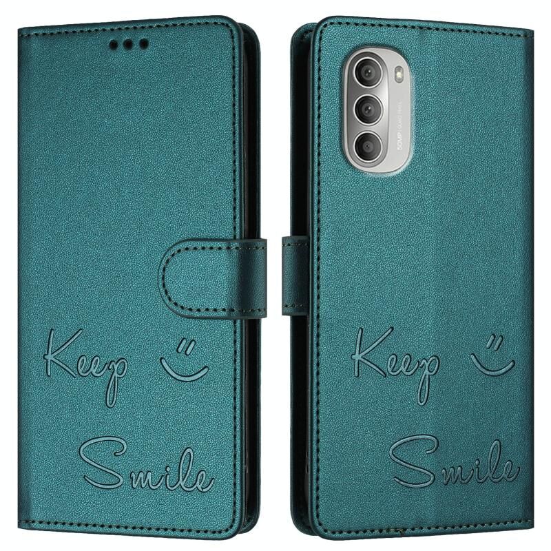 Θήκη τηλεφώνου δερμάτινη με ανάγλυφο χαμόγελο και RFID για Motorola Moto G51 5G (Μέντας Πράσινο)