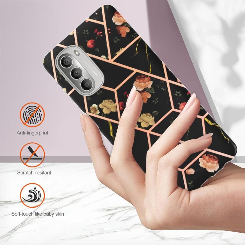 Θήκη κινητού τηλεφώνου TPU με σχέδιο μαρμάρου και λουλουδιών για Motorola Moto G51 5G (Ροζ Λουλούδι)