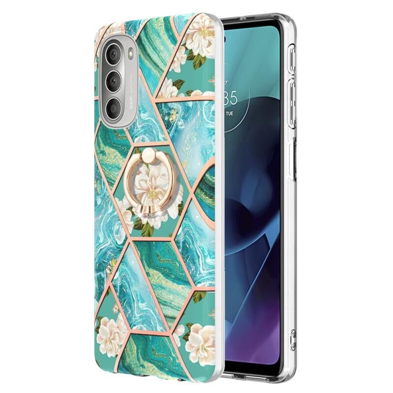 Θήκη για Motorola Moto G51 5G, Σplicing Marble Flower Pattern, TPU με Δακτύλιο Στήριξης (Ροζ Λουλούδι)