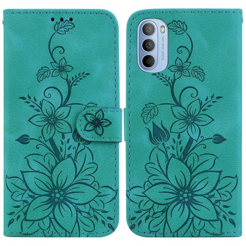 Θήκη τηλεφώνου δερμάτινη ανάγλυφη Lily για Motorola Moto G51 (Πράσινη)