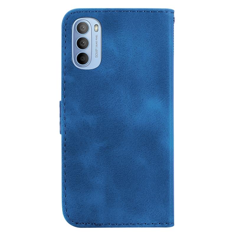 For Motorola Moto G51 Seven-shaped Embossed Leather Phone Case(Blue)