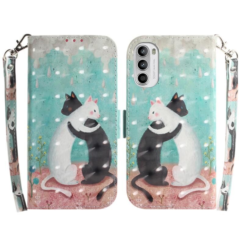 Θήκη τηλεφώνου δερμάτινη, οριζόντια, αναδιπλούμενη, με έγχρωμο 3D σχέδιο για Motorola Moto G52 (Μαύρη Λευκή Γάτα)