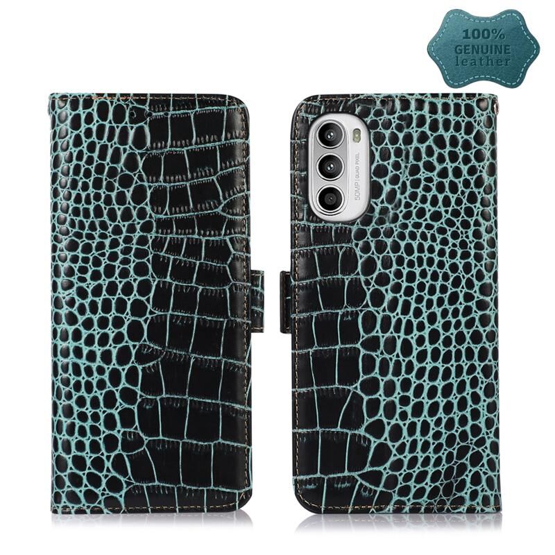 Θήκη τηλεφώνου από γνήσιο δέρμα αγελάδας, ανώτερης ποιότητας, για Motorola Moto G52 4G (Κροκόδειλος, Μαύρο)