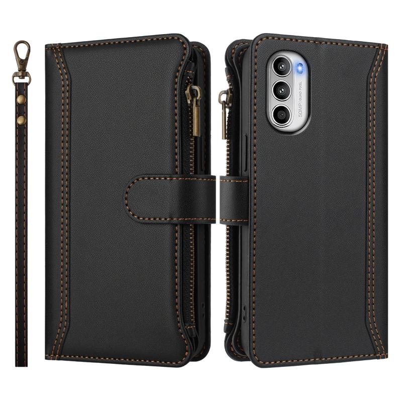 For Motorola Moto G52 4G / G82 5G / G71S 5G Magnetic Closure 9 Card Slots Zipper Leather Case with Hand Strap(Black)