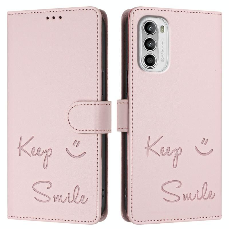 Θήκη τηλεφώνου από δέρμα με ανάγλυφο χαμόγελο και RFID για Motorola Moto G52 4G/G82 5G/G71s 5G (Μέντας Πράσινο)