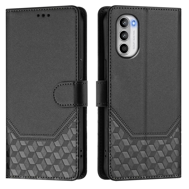 Για Motorola Moto G52 4G / G82 5G / G71s Honeycomb ανάγλυφη RFID δερμάτινη θήκη τηλεφώνου (μαύρο)